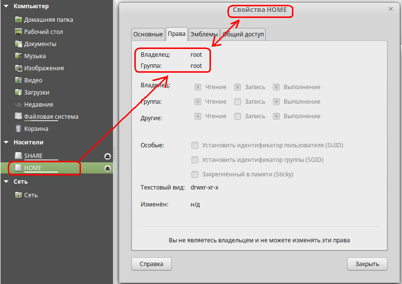Друзья, разбил диск на несколько разделов в ext4, установил Минт и теперь на второй раздел с меткой "HOME" не дает ни чего записать, права только для ROOTa. Как переназначить права на меня, пользователя? Под ROOTом естественно дает все делать... Прикрепленные файлы:
