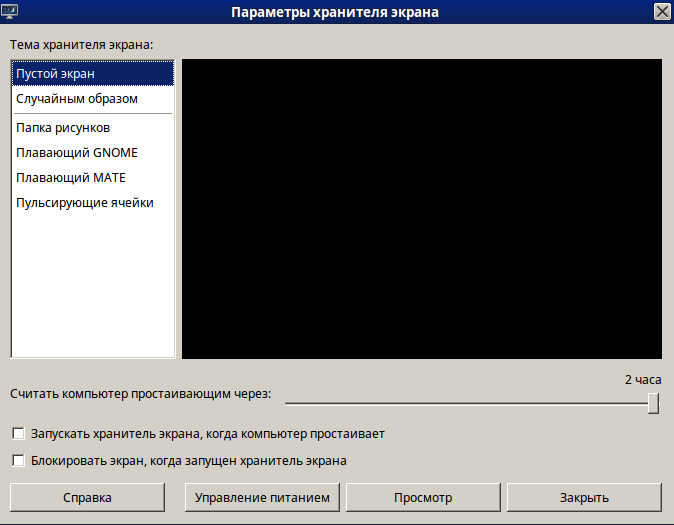 Операционная система Linux Mint 17.3 'Rosa' MATE 64-bit Проблема: каждый 10 минут отключается экран. Какие настройки не ставь, все равно отключается ровно через 10 минут. Прикрепил к теме скрины настроек. В списке запускаемых программ при старте системы галочка с хранителя экрана снята. Что делать? Как сделать так, чтобы экран отключался через час неактивности или вовсе не отключался? |
