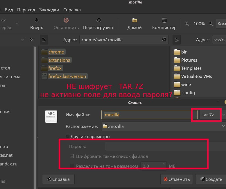 .7z жмёт с шифрованием ,а сразу в .tar+сжать+поставить пароль - не хотит. можно как то подправить ? ...