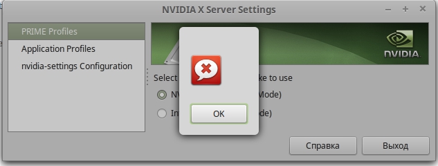 Error: nvidia mode can't be enabled