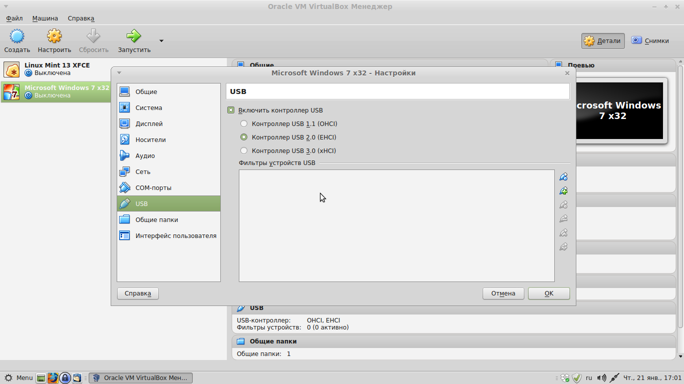 Всем доброго время суток. Не подключаются флешки к гостевой ОС в VirtualBox. Поставил нужный плагин, теперь при включении машины вылетает ошибка и машина стартует. Если же изменить настройки USB на 1.1, всё запуститься нормально. |
