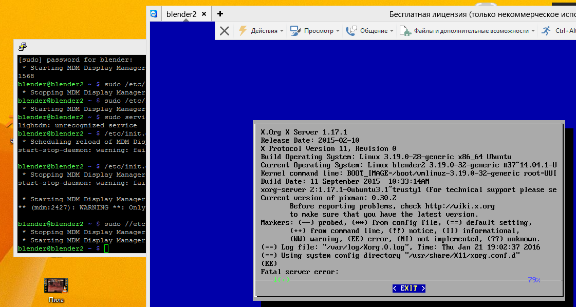 Хочу сразу сказать я с линуксом первый раз стоят "Rosa" Cinnamon Edition .... Linux Mint 17.3 Нужно мониторить машины на линуксе с винды . Для меня самый простой и понятный путь через teamviewer. Все работает . Но есть одна проблема. Не запускаются иксы если монитор в момент старта не подключен. А мне необходимо , чтобы машины стояли без мониторов. Когда иксы запущены sudo service lightdm stop их гасит а sudo service lightdm start их запускает . Но когда машина запущена без монитора иксы не стартуют и по SSH sudo service lightdm start команда не срабатывает - выдает ошибку. |