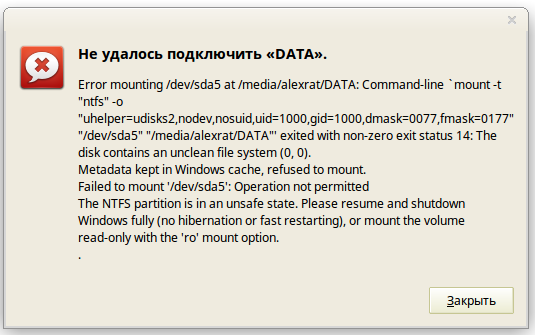 Доброго времени суток! Подскажите что за фигня? Периодически виндовые разделы недоступны (см.скриншот). Несмотря на то что написано на скриншоте, винда не должна быть в спячке. Я отключил в винде подкачку, что по идее должно гарантировать отсутствие спящего режима, да и в планах энергопотребления спящий режим отключен. На текущий момент у меня mint 17.3 xfce. С другими окружениями такого по моему не случалось. В теории же все сборки должны иметь одинаковый набор компонентов, а DE это же просто гуй над ядром... Или всё сложнее.