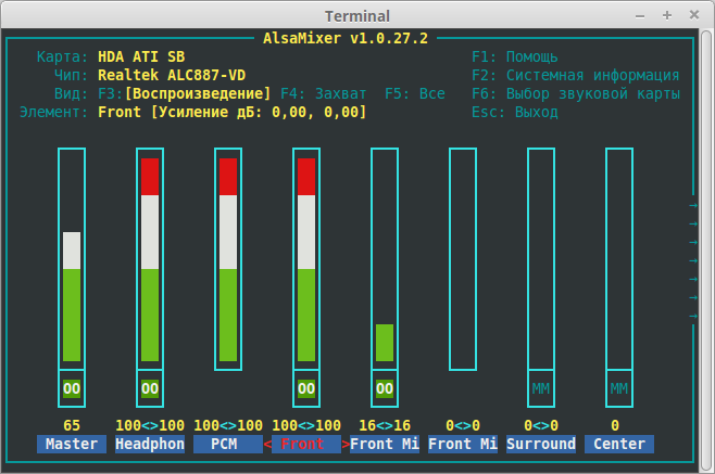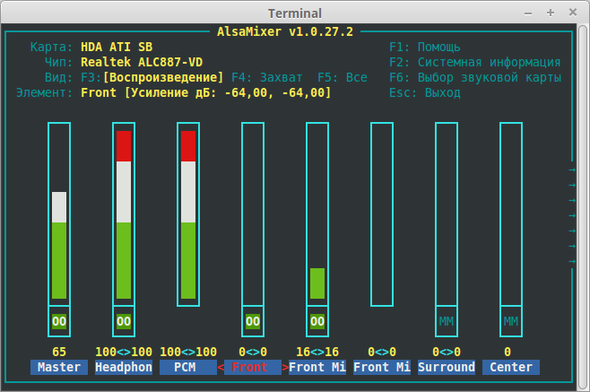 При 1 варианте работают на всю мощь и колонки с буфером и наушники. При втором работают только наушники и фронтальные левый и правый динамики. Вот я хочу чтобы при втором варианте работали только наушники и не приходилось вырубать колонки вручную или через alsamixer. т.е. Получается как на рисунке alsa1 а надо как на рисунке alsa только автоматически