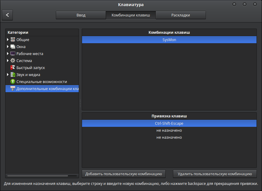 Не могу в синамоне настроить вызов системного монитора (диспетчер задач) с клавиатуры. Пишет - ошибка команды. В "крысе" настроил моментально. | ||||||