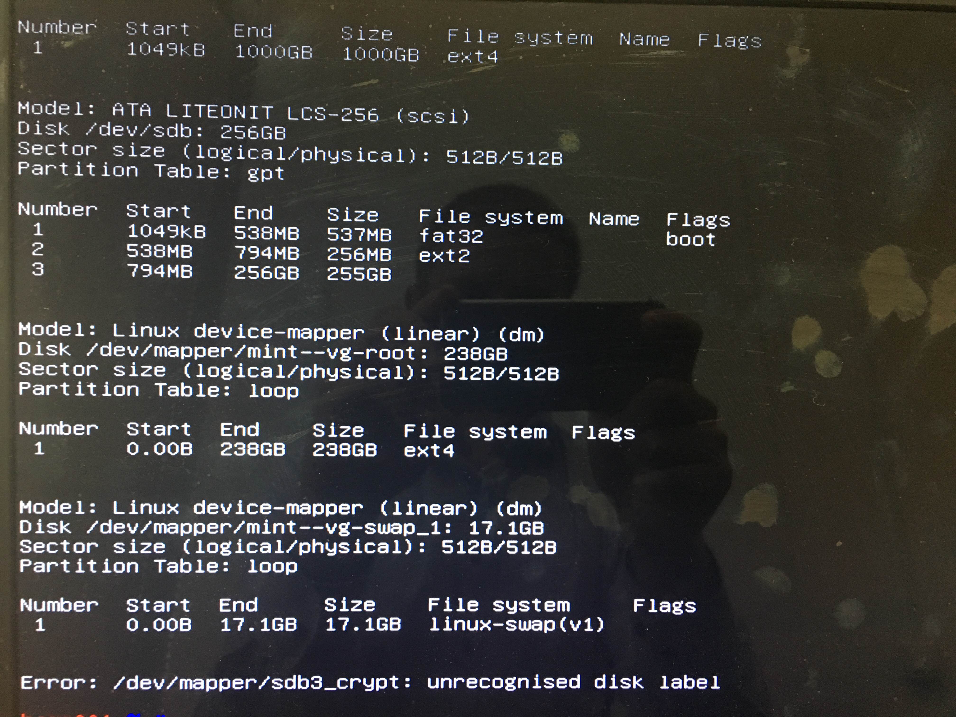 lifer, Покажи инфу. sudo fdisk -l sudo parted -l blkid cat /etc/fstab cat /etc/mtab только под спойлер. | ||||||||