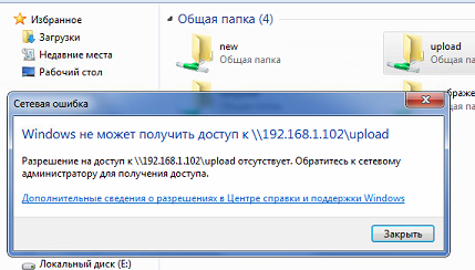 ???? однако на представленном вами скрине ваша винда говорит что не может получить доступ к другому месту Windows не может получить доступ к \\192.168.1.102\upload вы бы определились к какому компу с другим IP и к какой папке на нём вы не можете зайти. ну и ....по поводу | zen: | | посмотри права в опциях монтирования,диска с windows. |