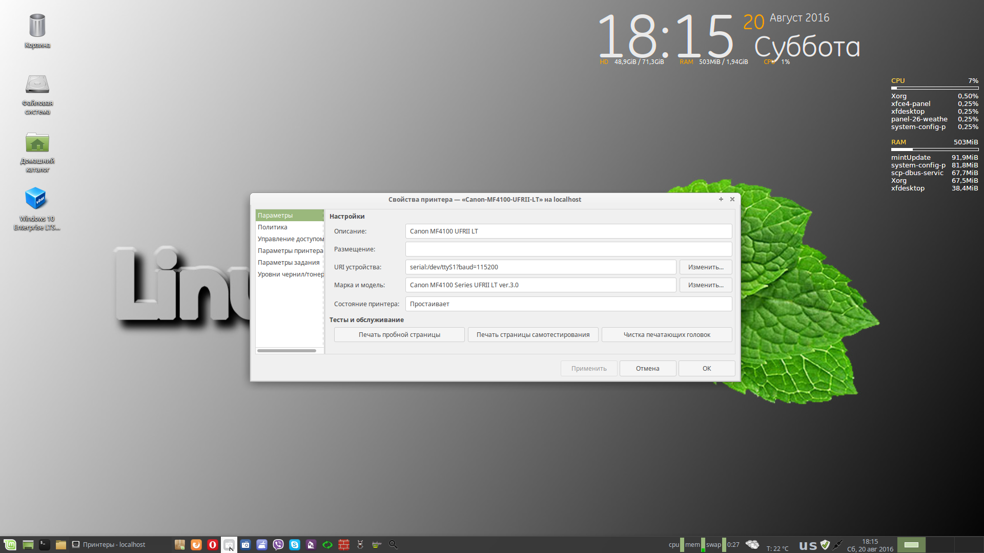 Приветствую! Вроде настроил, скачал драйвер, установил. LInux МФУ видит, отправляет на печать, но не печатает. Определяется МФУ, как MF 4100. МФУ подключен к ПК с Windows 10 1607, а не к Linux. Есть локалка мини, через роутер ZyXel Keenetic В чём причина? Что я не так делаю? Скриншоты прилагаю. Редактировалось: 4 раз (Последний: 21 августа 2016 в 10:49) |