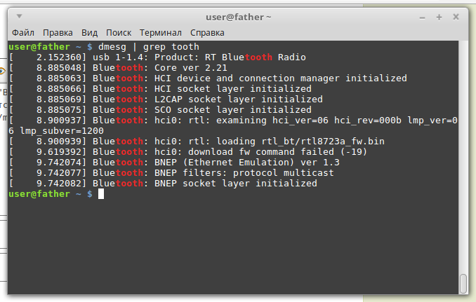 Что толку то, когда loading rtl_bt/rtl8723a_fw.bin downloading fw command failed По lsusb определяем модель, чтобы удостовериться в том, что именно нужна прошивка на rtl8723a, и ищем. Например - http://forum.ubuntu.ru/index.php?topic=262028.0 | olegwhite: | | Установите Linux Mint 18.1, там все нормально уже работает. |