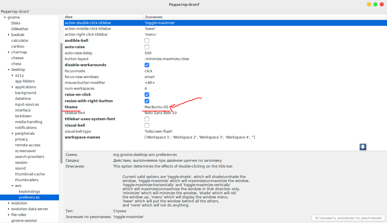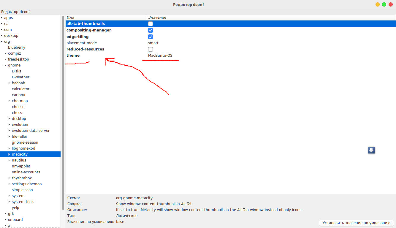 Слава богам, я разобрался с этой проблемой!!!! В редакторе dconf кроме прописания темы по адресу org/gnome/desktop/wm/preferences также следует внести изменения по пути org/gnome/metacity, где в поле "Theme" прописываем название темы. Сразу после этого применяется новая тема. P.S. Я использую включенный Compiz, может проблема связанна именно с этим. |