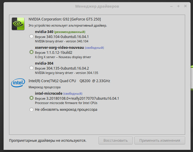 сейчас как раз у меня стоит это ядро, но драйвер на видюху стоит как показано на рисунке. А если поставлю родной (рекомендованный) от nvidia, то изображение меньше чем монитор. с чем это связано? Прикрепленные файлы: